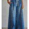 Relaxed, modern, and effortlessly cool — the Bell Jar Pants feature a wide-leg silhouette crafted from soft woven denim with a fluid drape. Designed with a comfortable drawstring waistband, functional pockets, and button detailing, these pants bring ease and style into perfect balance. Pair with fitted tops or oversized knits for an effortlessly chic look year-round.