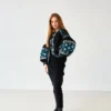 The front tie closures, geometric motifs, and bold sleeve volume create a wearable statement piece that feels like subtle, modern folk art. Lightweight and breathable, it’s ideal for casual styling.