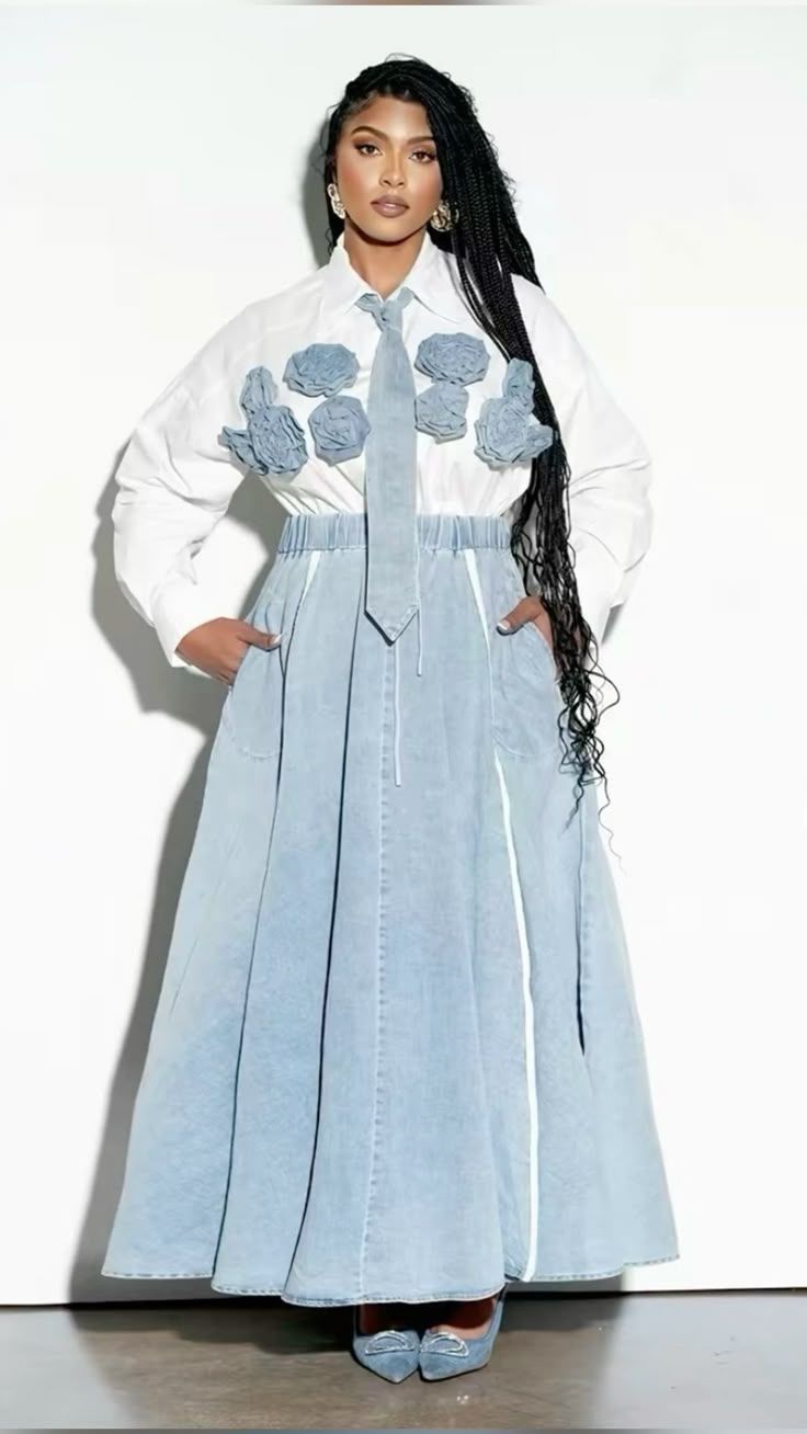 This premium Italian mid-weight denim maxi skirt has dual front zippers that let you adjust the slit as high or as low as you like on each side. The two zippers create movement, versatility, and a touch of asymmetry for a high-fashion look in a casual denim fabric. Finished with an elastic waistband and adjustable tie for a customizable, comfortable fit. A closet staple for the fashion-forward woman who loves effortless style.