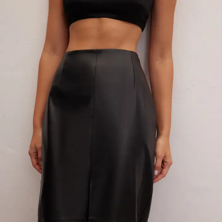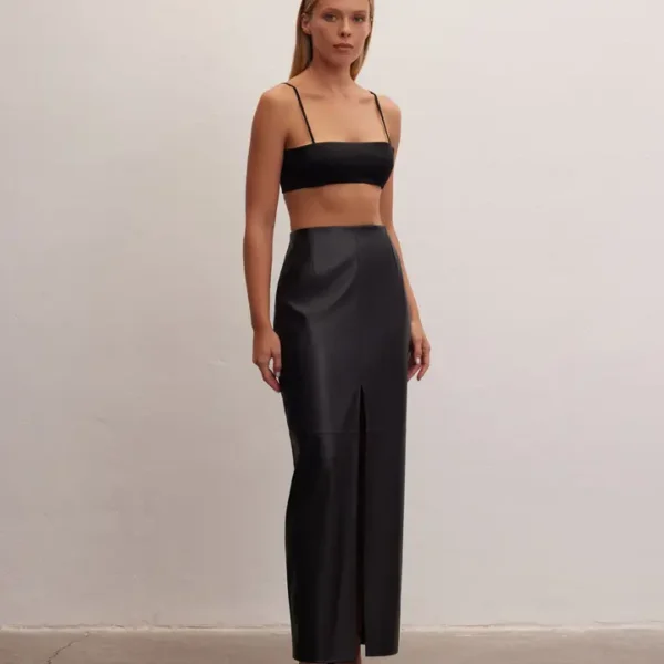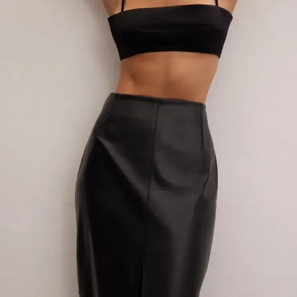 Unleash your inner style maven with the Noir Leather Skirt, a bold addition to any modern wardrobe. Made from 100% faux leather, this skirt combines edgy sophistication with ethical fashion. The Noir skirt features a sleek, streamlined silhouette that hugs your curves, offering a flattering fit for any occasion. Its timeless design makes it versatile enough to pair with everything from a simple tee to a tailored blouse. Whether you’re dressing up for a night out or adding a touch of elegance to your everyday look, the Noir Leather Skirt ensures you stand out with confidence and style. Elevate your ensemble with this striking piece that embodies both luxury and sustainability.