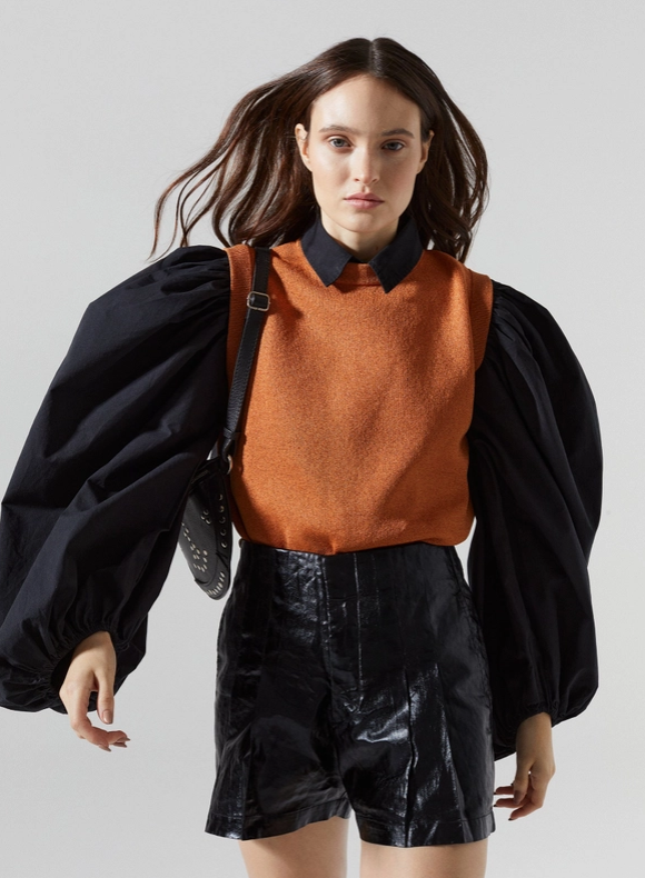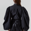 Bold, sculptural, and effortlessly chic — the Power Puff Blouse is a statement piece that instantly elevates any wardrobe. Designed with dramatic voluminous sleeves, this structured button-down blends high fashion with a modern edge. The crisp black cotton gives it a sleek, polished look, while the exaggerated silhouette adds runway-worthy drama.