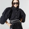Bold, sculptural, and effortlessly chic — the Power Puff Blouse is a statement piece that instantly elevates any wardrobe. Designed with dramatic voluminous sleeves, this structured button-down blends high fashion with a modern edge. The crisp black cotton gives it a sleek, polished look, while the exaggerated silhouette adds runway-worthy drama.